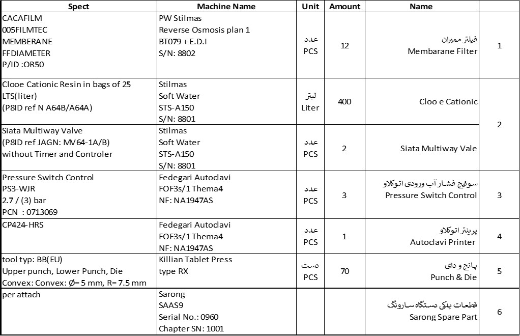 2. Should the requested materials be available in your warehouse, also provide your pricing proposal in Rial.